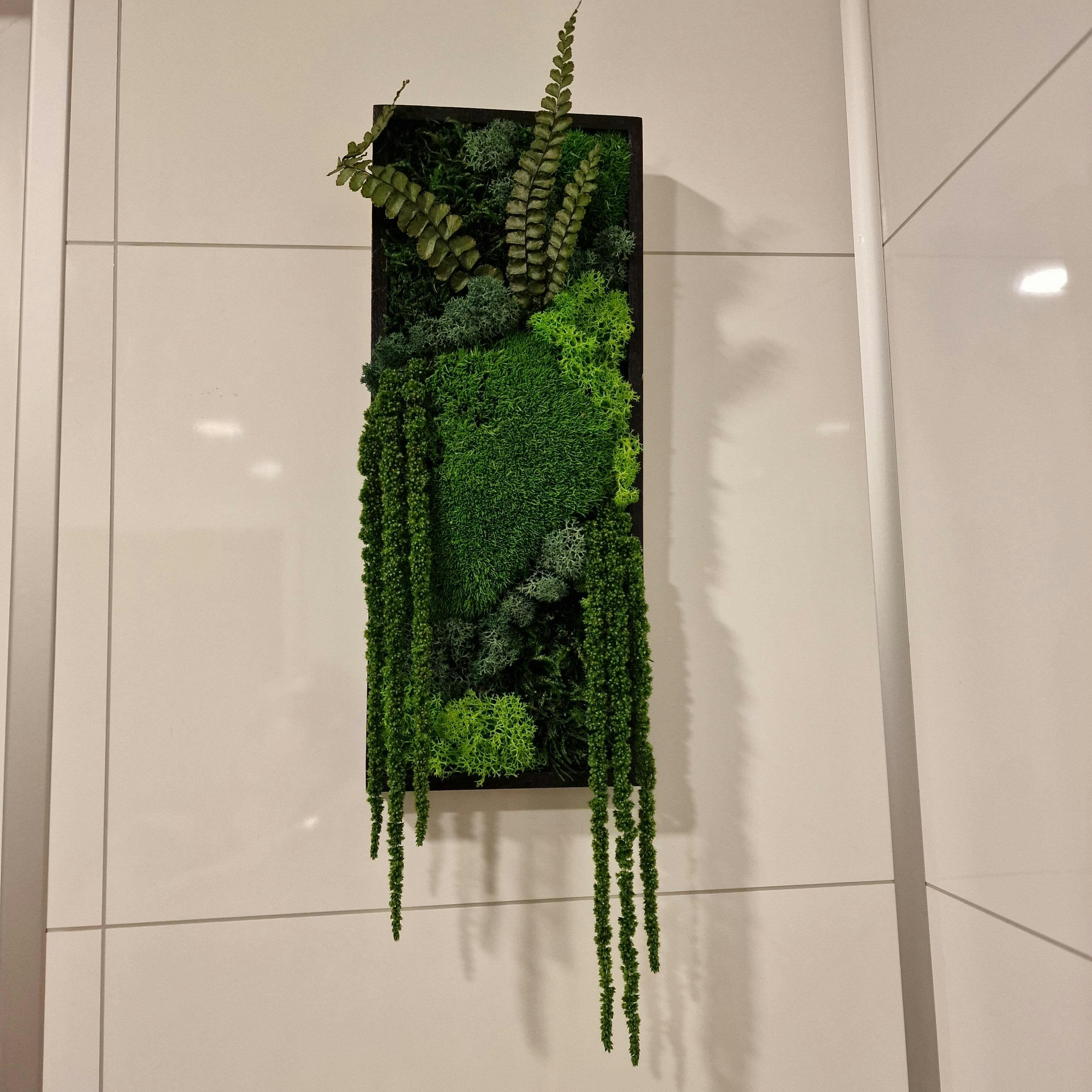 Manchmal braucht es nur ein kleines Detail, um einem Raum eine ganz neue Atmosphäre zu verleihen. Dieses handgefertigte, rechteckige Moosbild ist genau das: ein kleines Stück Wald, das deinem Zuhause oder Büro als kunstvoller Blickfang eine einzigartige, natürliche Note verleiht.